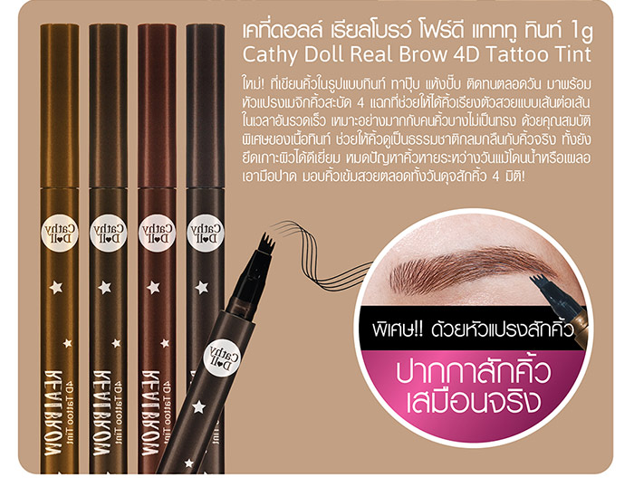 Cathy Doll Real Brow 4D Tattoo Tint #01 Light Brown. Thailand