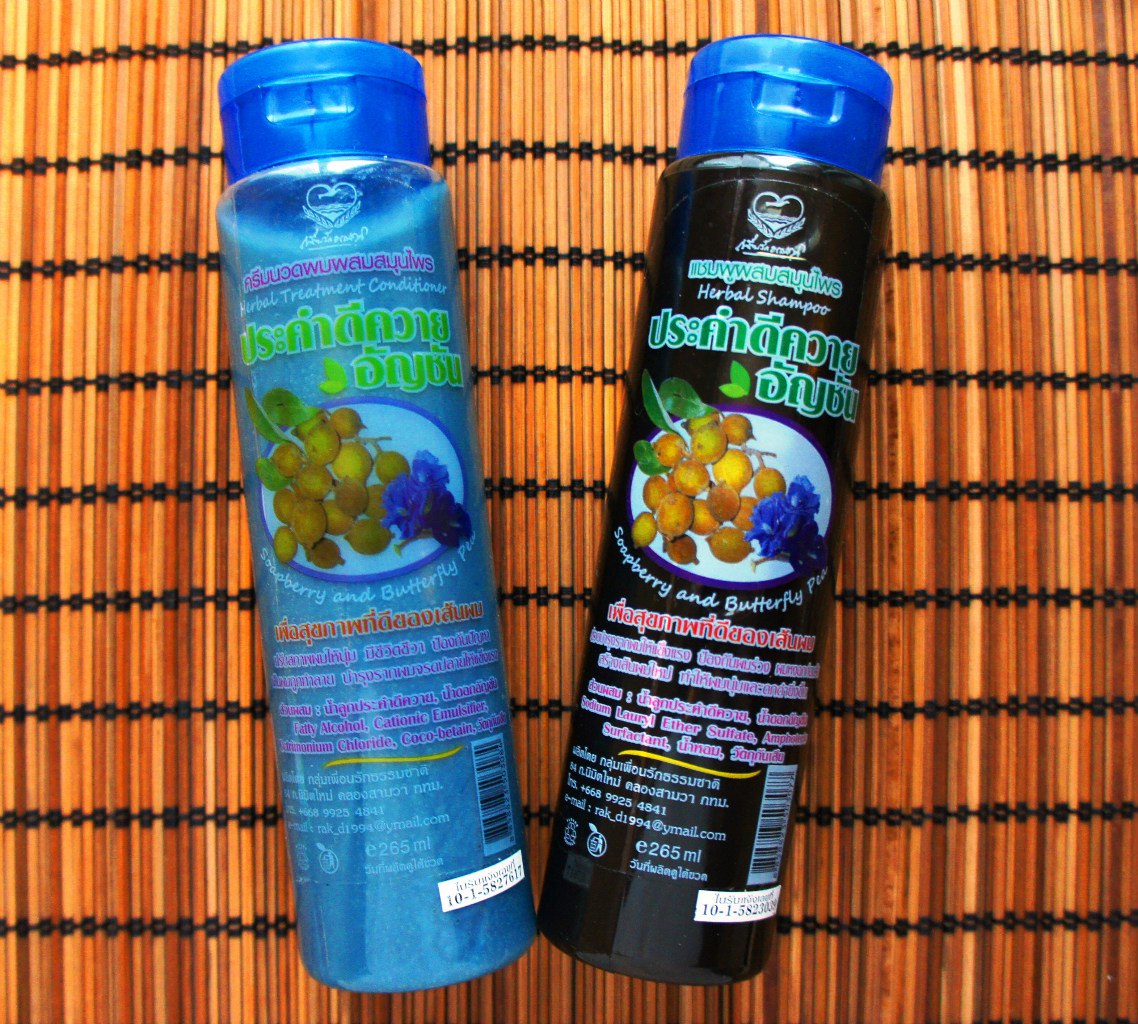 Тайский шампунь и кондиционер с мотыльковым горошком и мыльным орехом по 265 мл.