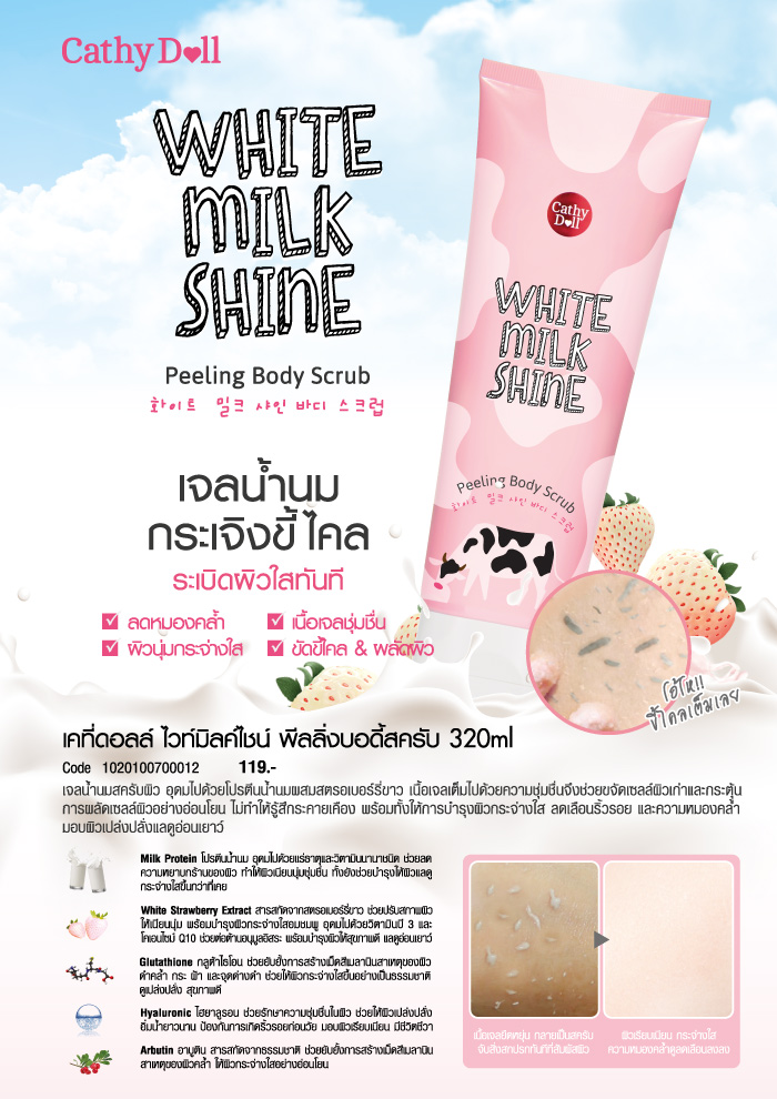 Peeling Body Scrub Cathy Doll White Milk Shine 320 ml. Thailand